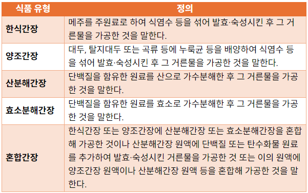 Q 식약처에 의하면 현재의 간장 종류는 총 5가지로 분류된다. 이러한 식품공전의 간장 분류는 어떤 부분이 문제인가요?