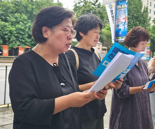 왼쪽부터 성명서를 낭독하는 유미화 녹색소비자연대 대표, 우춘홍 (사)간장협회 대표, 황홍순 두레생협연합회 회장 / 사진= 장독대뉴스