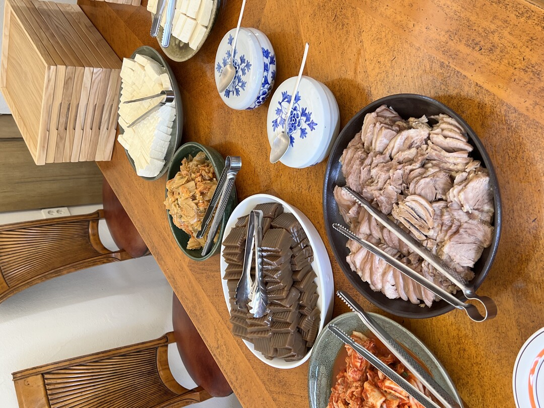 임대표와 '마녀'들이 나서 직접 만든 비빔밥, 흑돼지수육, 도토리묵, 촌두부가 점심식사로 제공됐다. / 사진= 간장협회