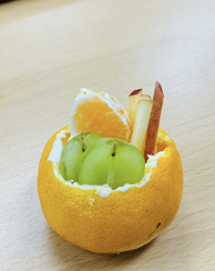 1. 준비한 과일의 윗부분을 잘라낸 후, 과육을 파낸다.