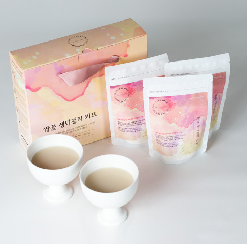 쌀꽃 생막걸리 키트는 분말과 물을 섞어 하루 반 정도를 놔두면 된다. 발효 후 동봉된 거름망을 이용하여 쌀을 걸러주는데 이때 거르지 않고 음용하면 쌀 식감을 즐길 수 있다. 국내산 쌀과 현미가 함유되어 부드러운 단맛이 매력적이며 은은한 참외향이 도는 게 특징이다. 34,800원에 판매 중이다.