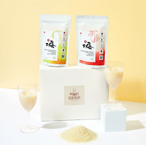 '웰엔뷰’의 도란도란 막걸리 키트는 본연의 맛을 즐길 수 있는 기본 막걸리부터 깔라만시 막걸리, 자몽 막걸리까지 다양한 선택이 가능하다. 제조용 용기를 포함해 구성되어 있어 만들 용기를 따로 준비할 필요가 없다. 1리터 전용 용기에 파우더를 넣고 물을 붓고 섞은 후 48시간 정도 발효를 해주면 막걸리가 완성된다. 함께 동봉된 엽서에 선물할 대상의 이름을 적어 간단한 메시지를 남기면 그냥 선물하는 것보다 애정을 담을 수 있다.