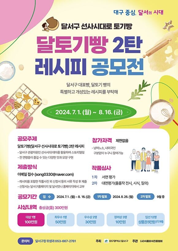 대구 달서구(구청장 이태훈)는 8월 16일까지 ‘달토기빵 2탄 레시피 공모전’ 참가자를 모집한다고 밝혔다.