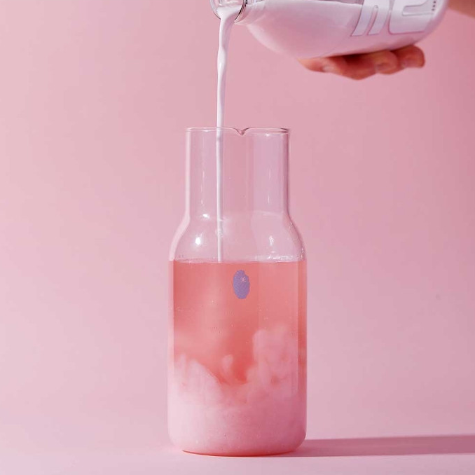 마실 때 핑크빛 윗부분을 먼저 유리병에 따르고 남은 술을 천천히 마저 따르면, 핑크빛 구름이 피어올라 사랑스러운 분위기 연출이 가능하다