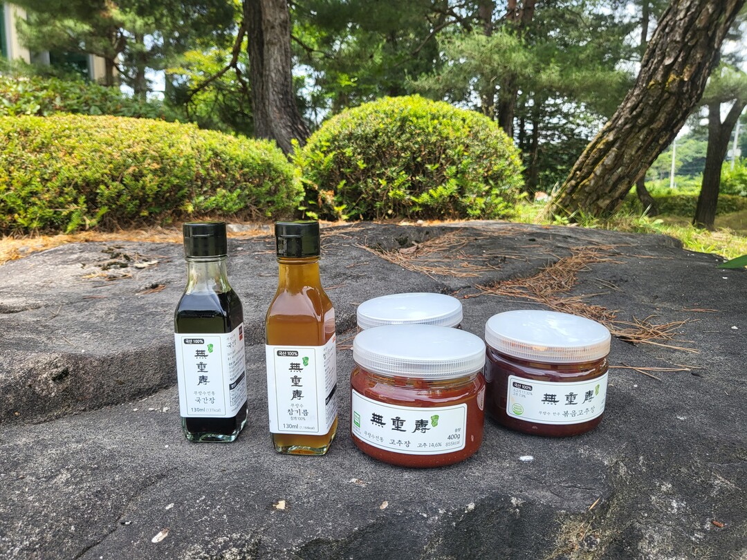 | 무량수 제품 (왼쪽부터 국간장, 참기름, 고추장, 볶음고추장) / 사진 = 간장협회 |