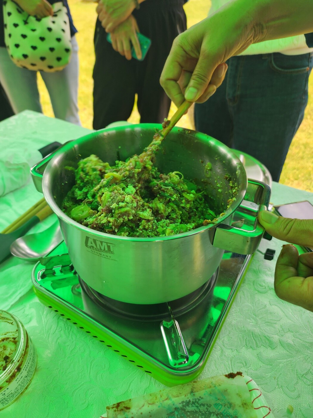 ‘먹어야 지켜진다.’ 간장협회에는 우리장과 발효음식을 기반으로 한식을 알리는 식생활 강사들도 함께하고 있습니다. 찾아가는 장독대에는 우리장을 활용한 음식을 배우고 맛보는 시간이 있지요. 식생활 강사들의 선생님이신 간장협회 고은정 이사의 ‘약된장’ 시연이 있었습니다. 쉽고 맛있어야 하므로 기억하기 쉽게 재료는 모두 1:1입니다. 된장 400g, 두부 400g, 다진 소고기 400g, 다진 대파 400g을 준비하세요. 냄비에 두부를 으깨어 넣고 남은 재료를 모두 넣은 후 잘 섞어가며 보글보글 끓여줍니다. 여기에 들기름이 들어가는 것이 포인트입니다.