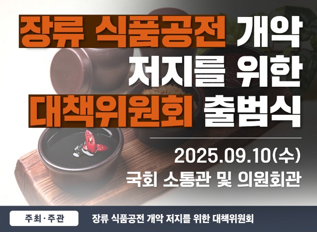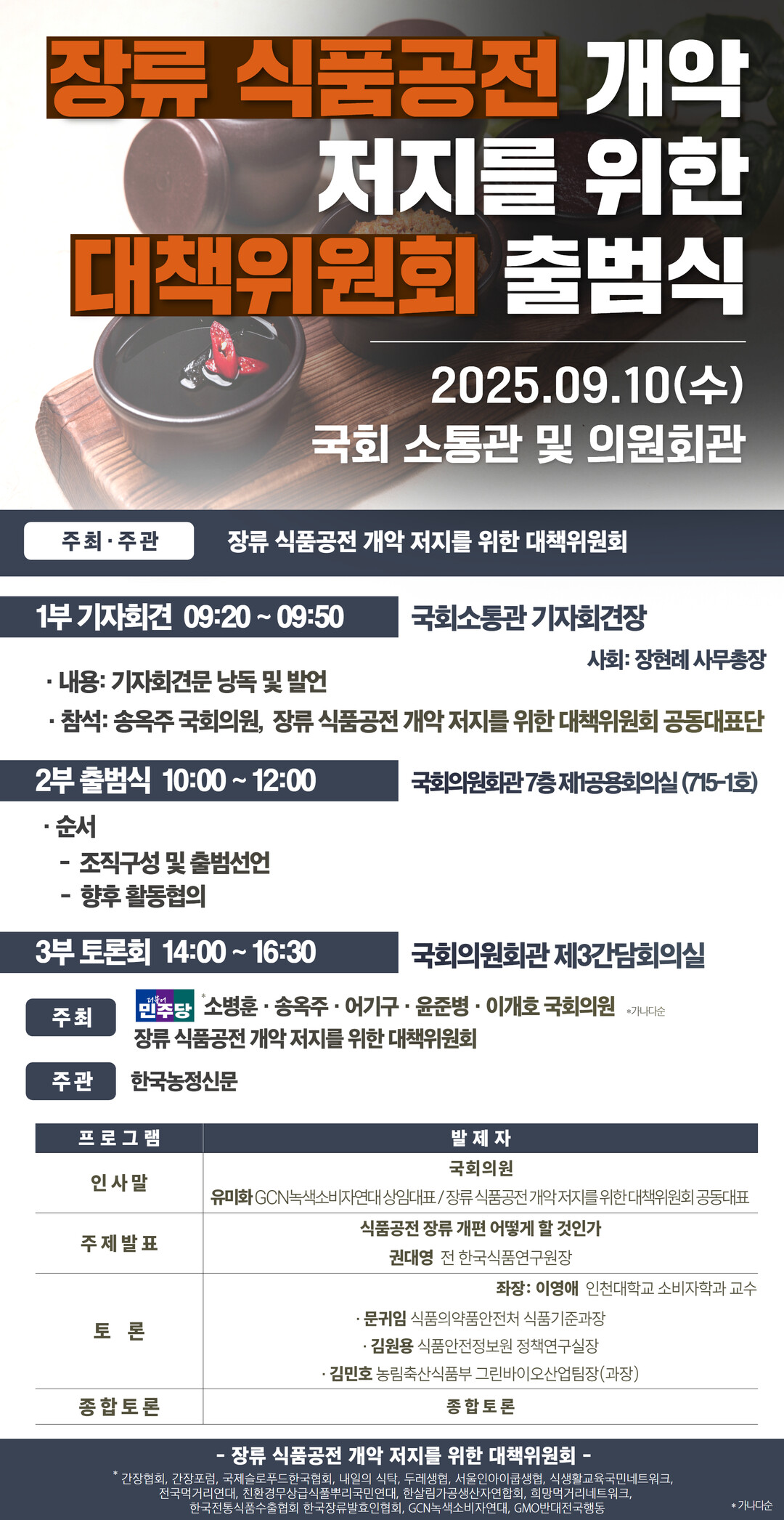 장류 식품공전 개악 저지를 위한 대책위, 9월 10일 국회서 공식 출범