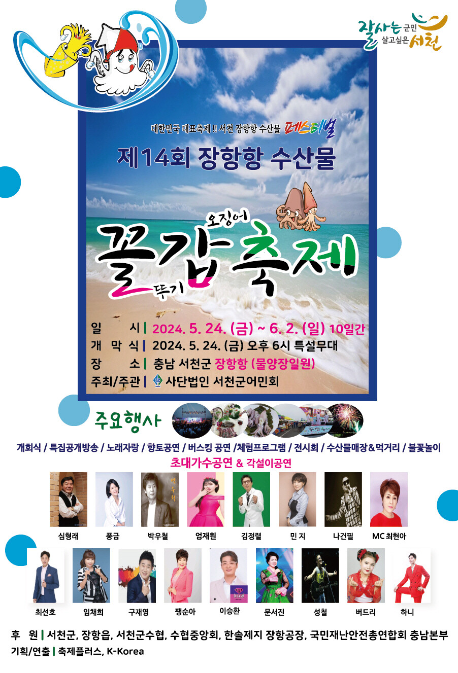 이번 축제에서는 제철 싱싱한 꼴뚜기와 갑오징어를 맛볼 수 있으며, ▲갑오징어, 광어 맨손잡기, ▲수산물 깜짝 경매, ▲수산물 트로트 가요제 등 다양한 축제가 예정되어 있다.