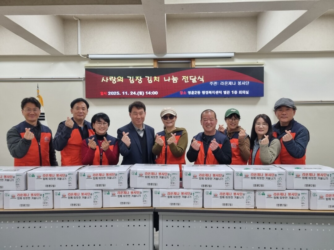 라온제나 봉사단, 명륜2동 저소득 가구에 사랑의 김장김치 전달 / 사진=원주시