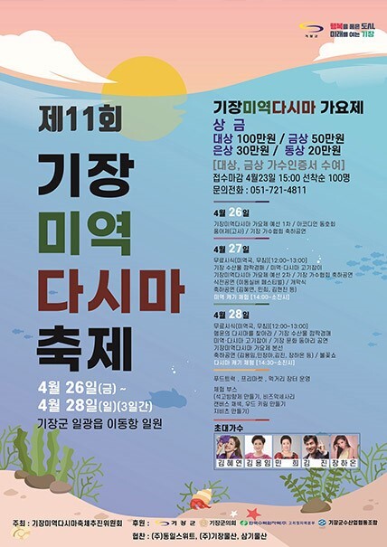 부산 기장군은 오는 26일부터 28일까지 코로나19 확산 이후 중단되었던 11회 기장미역다시마축제를  5년만에 개최한다고 밝혔다.
