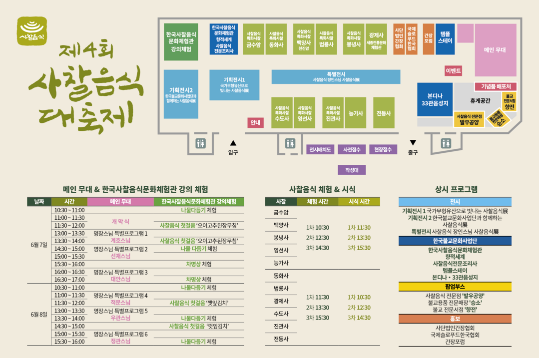 사단법인 간장협회(대표이사 우춘홍)는 오는 6월 7일(토)부터 8일(일)까지 이틀간 서울 양재 aT센터 제1전시장에서 열리는 ‘제4회 사찰음식 대축제’에 참가한다고 밝혔다.