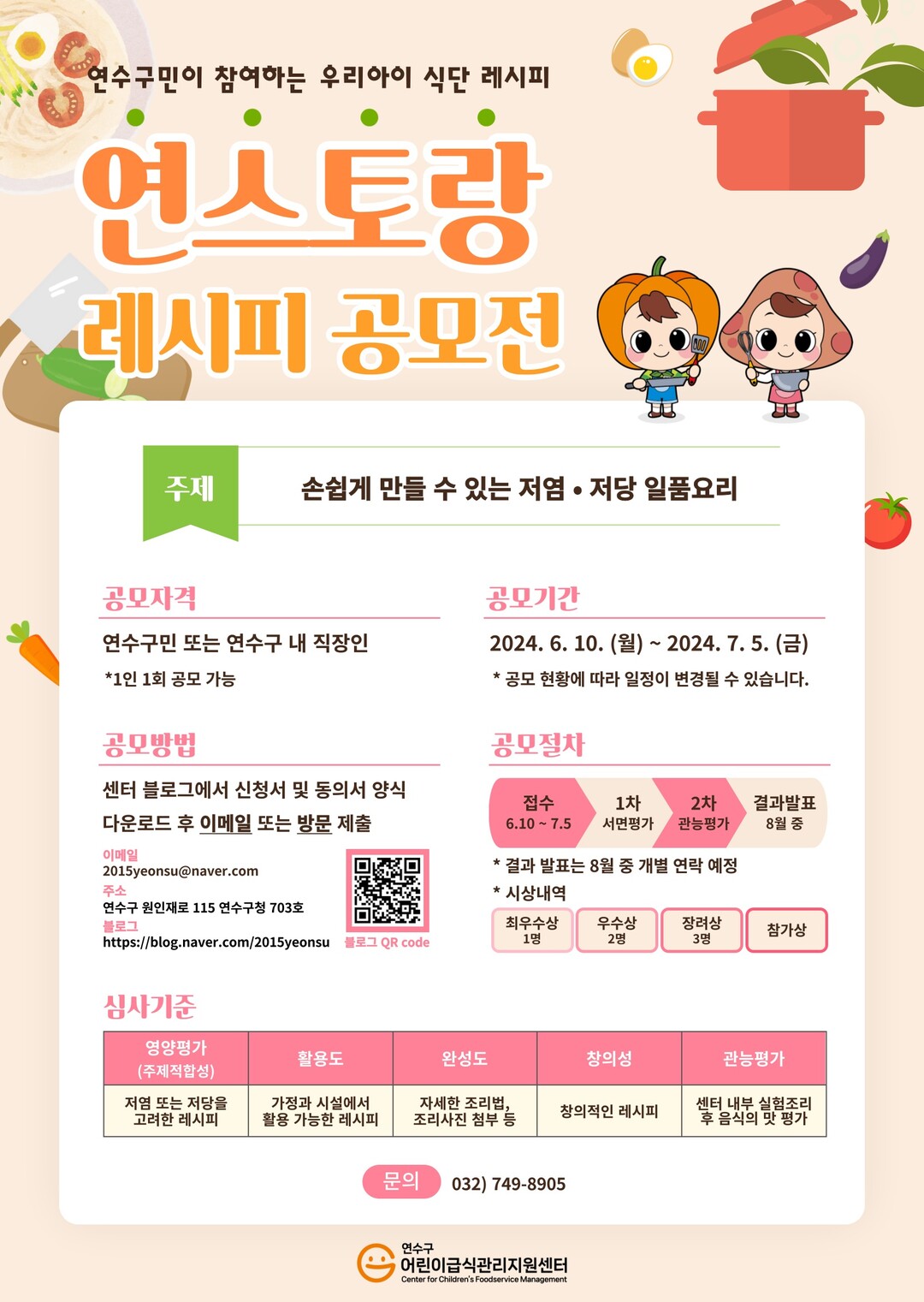 | 2024 연스토랑 레시피 공모전 포스터 / 사진=연수구어린이급식관리지원센터 |